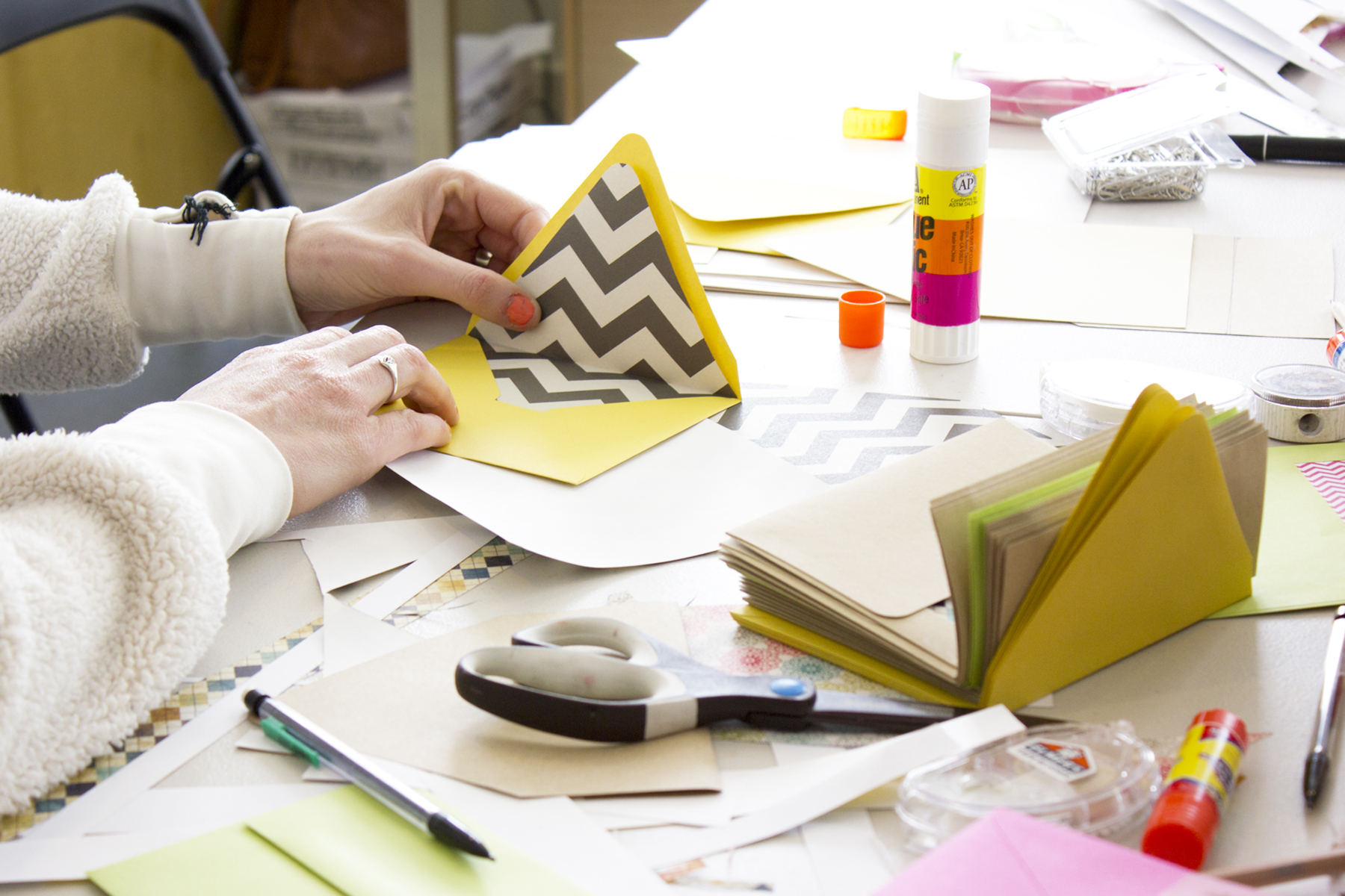 We had a great time at our first Letterpress Workshop in February! It was a snowy day and it was nice to be cozy in the studio chatting and printing! Each participant learned the basics of letterpress and printed 25 thank you cards on our vandercook printing press. They also learned how to line envelopes and had fun choosing from a variety of patterned paper and envelopes.